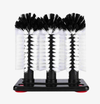 360° Swivel Brushes: Three flexible nylon bristle brushes swivel in either direction for thorough cleaning of both the interior and exterior surfaces of your glassware.
